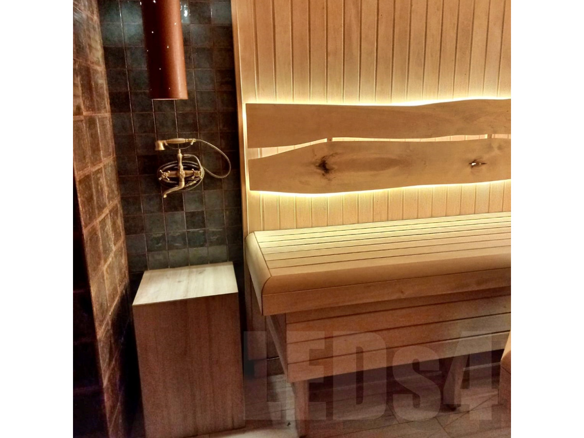 оформлення підсвітки в сауні чи лазні за допомогою світлодіодної стрічки.